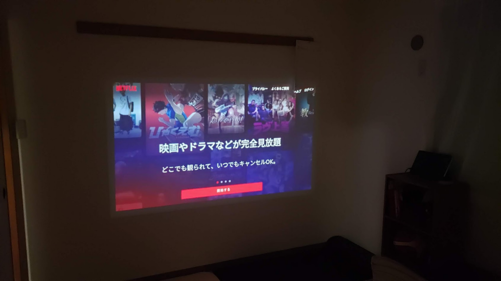 プロジェクターなので部屋を暗くする必要はあるけど、それもムードが出ていいんじゃないかと思っていたのですが……。