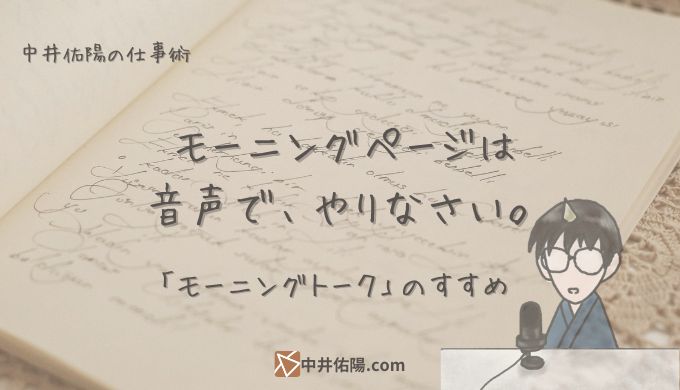 僕は常に頭の中で何かをごちゃごちゃ考えている人間です。それをしゃべって外に吐き出す。これだったら続けられるし、モーニングページの効果も得られる。
