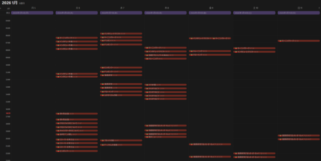 Notionカレンダーで表示すると実施したポモドーロが下の画像のように表示されます。