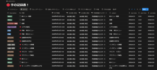 色々なことに使えるNotionのデータベースですが、ポモドーロテクニックを実施した時、その内容を記録しておくのに一番最適です。