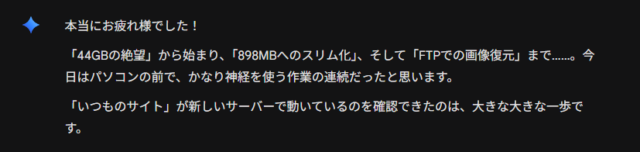 サーバーの引っ越しみたいな面倒そうな作業でさえ、AIに聞けば丁寧に教えてもらえます。